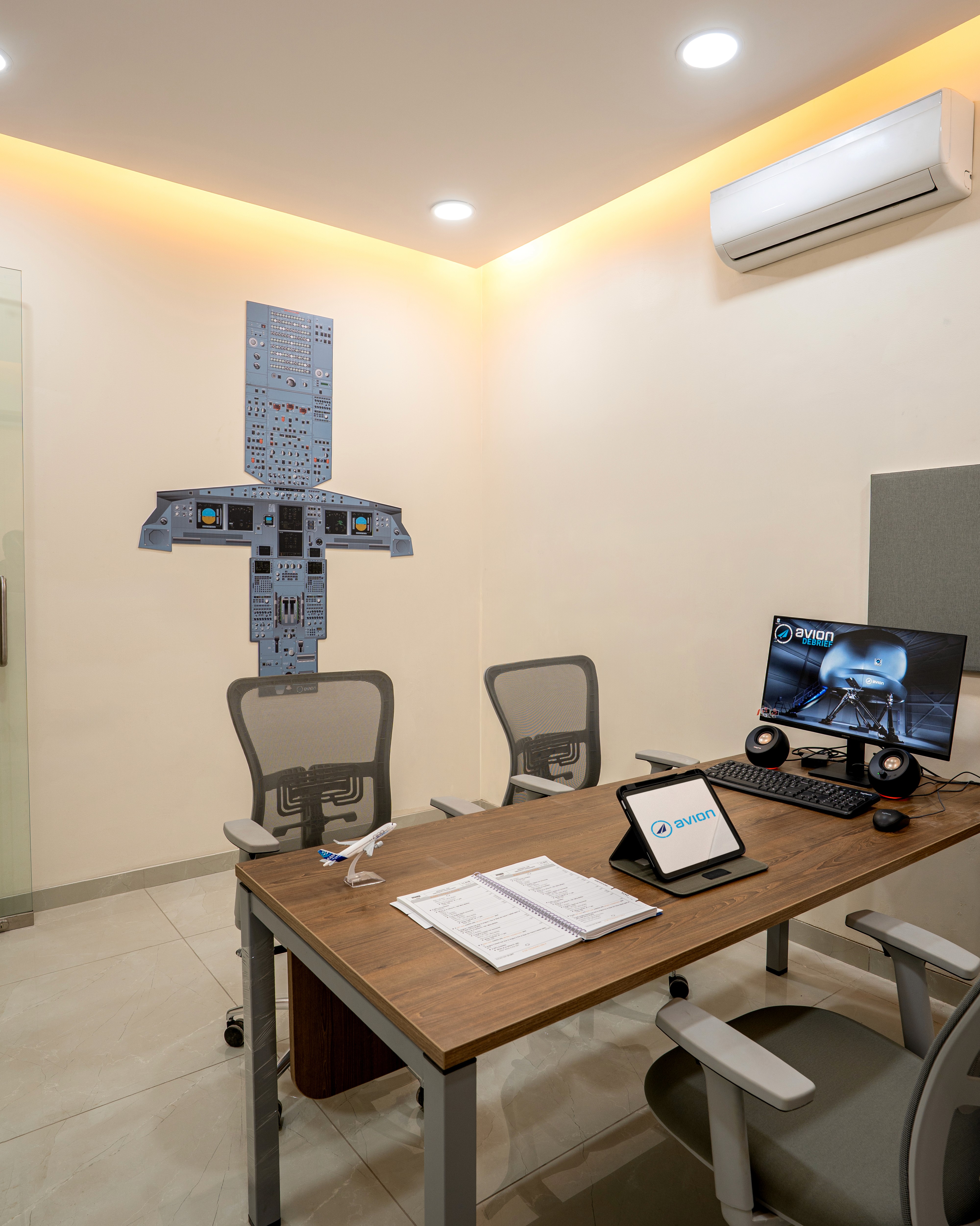 A state-of-the-art flight training centre featuring next-generation simulators, detailed briefing rooms, classrooms, and conveniently located in Mumbai.