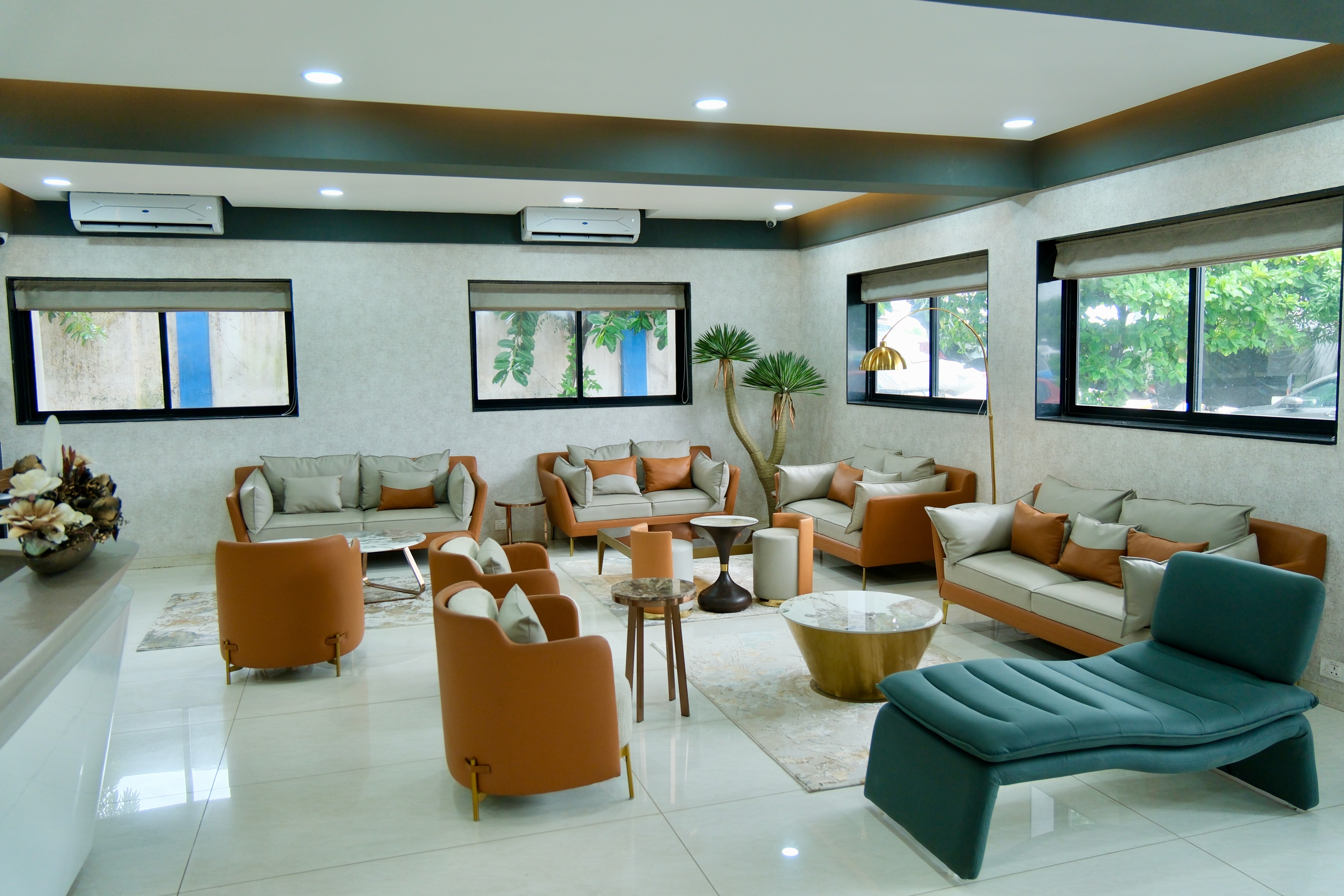 A comfortable crew area where pilots can relax, prepare, or review between training sessions.